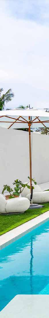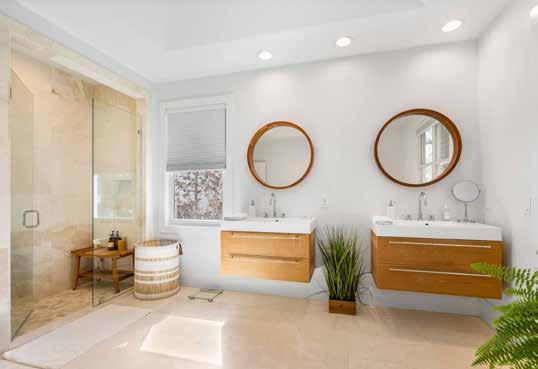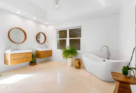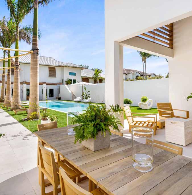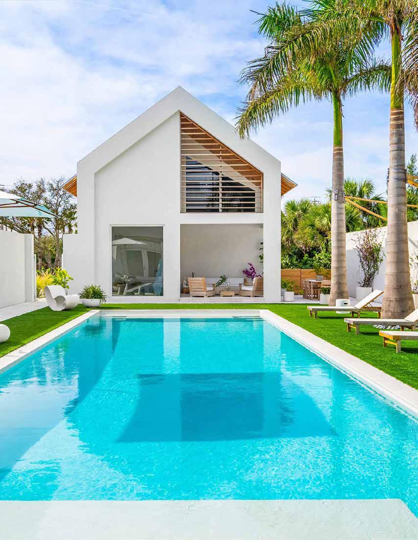 The Windsor-style courtyard pool is a perfect retreat with a hip coastal vibe while the new guest house also features additional flex space for office and home gym.
