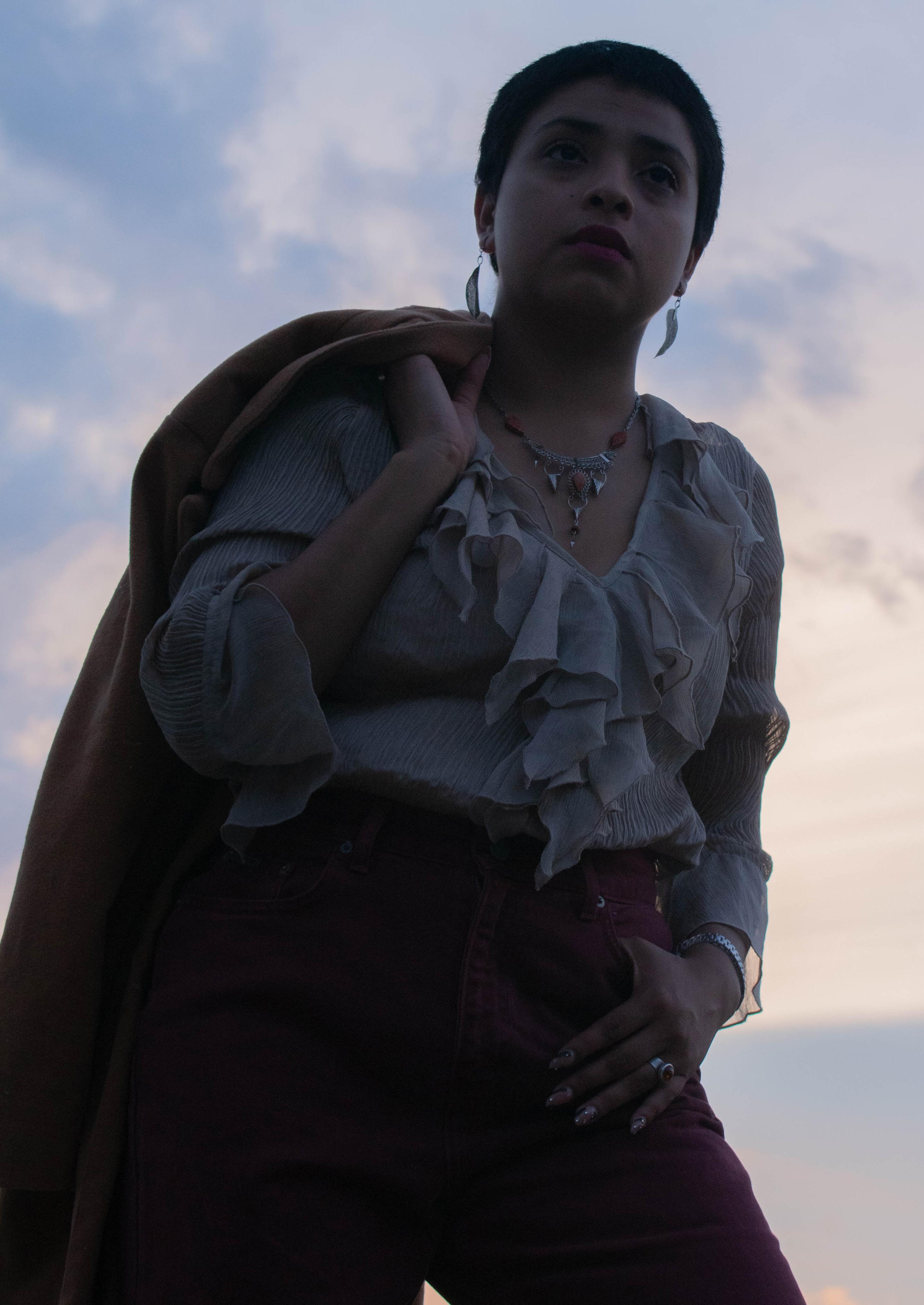 In vierno Textura: Blusa manga larga F21 [241100] Textura: Pantalón Zara [231000] Material: Saco Shein manga Zara contado contado