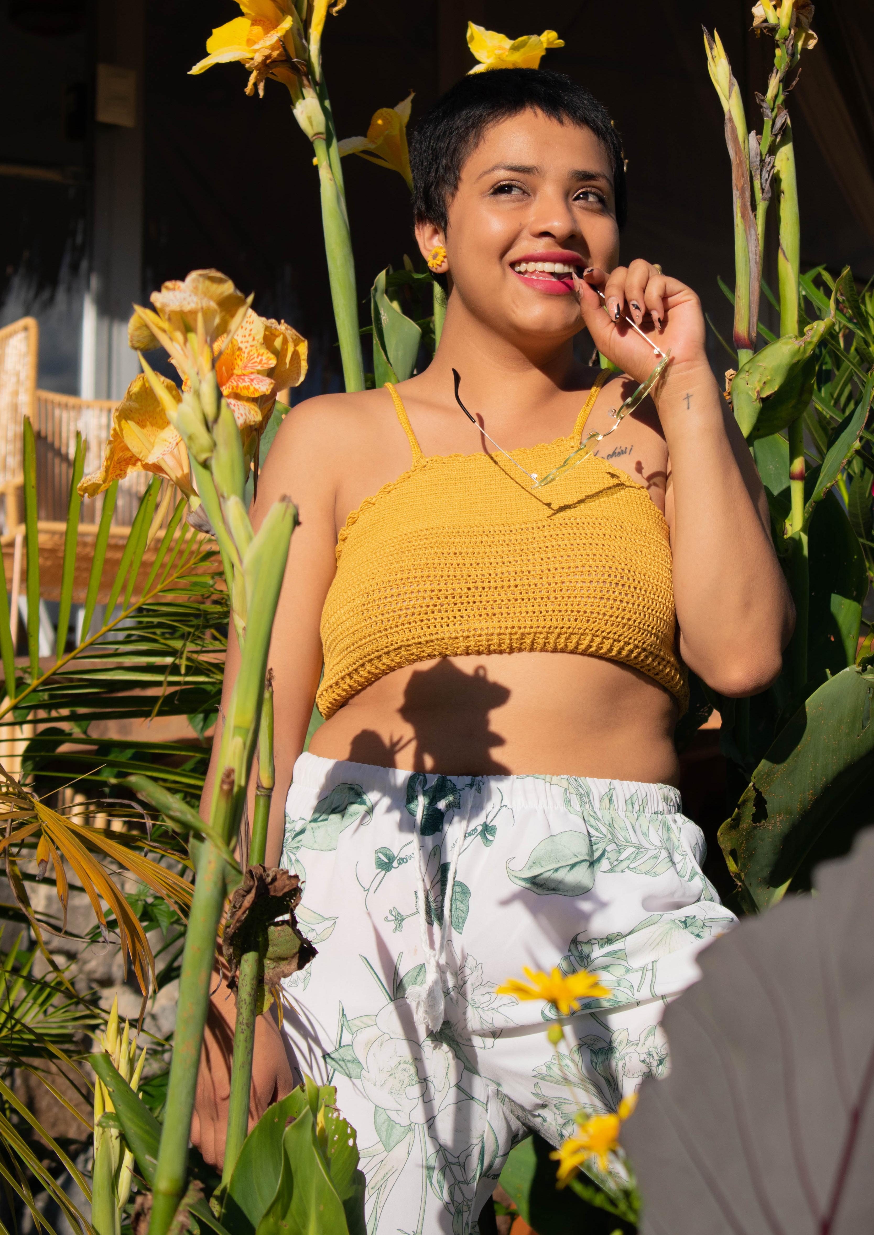 Blusa Zara [241100] CH M G Lana 000 - Crop top - Hecho a mano Pantalón Shein [231000] 3 5 7 9 11 13 Tela 254 - Tela ligera - Doble forro Q175.00 Precio al contado Q120.00 Precio al contado 016 Amarillo 111 Blanco F