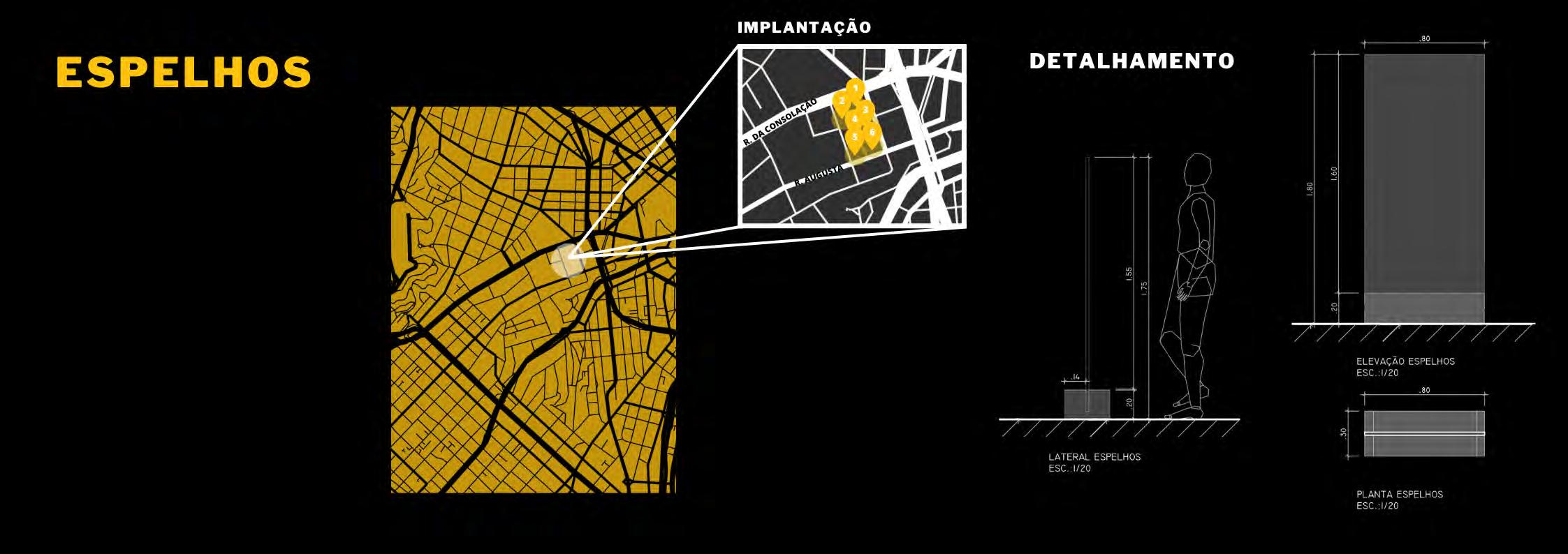 para criar o partido arquitetônico que se transforma em seguida, em Lugar (Sobrevivência), com o intuito de criar um projeto de percurso reunindo e potencializando as redes de pertencimento desses grupos identitários no cotidiano de São Paulo.