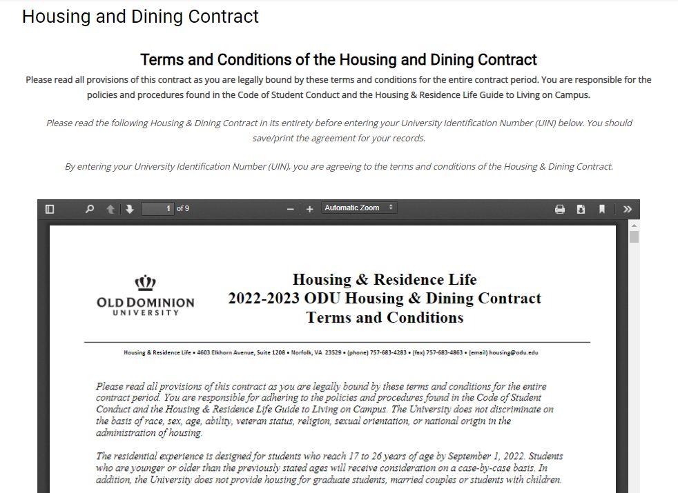 Contract Housing & Dining Contract ▪ Applicants are encouraged to read the Terms & Conditions before completing this step in the application ▪ If you are under 18 years of age, you will need to upload a parent/guardian notice agreeing to the terms and conditions ▪ Enter your University Identification Number (UIN) to sign the Housing & Dining Contract ▪ Click “Sign Contract” to proceed