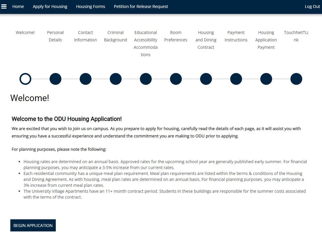 Begin Application” to proceed