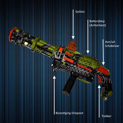 1) Steek de batterij in de batterijklep, dit hoeft enkel als je de guns net nog zelf hebt opgeladen