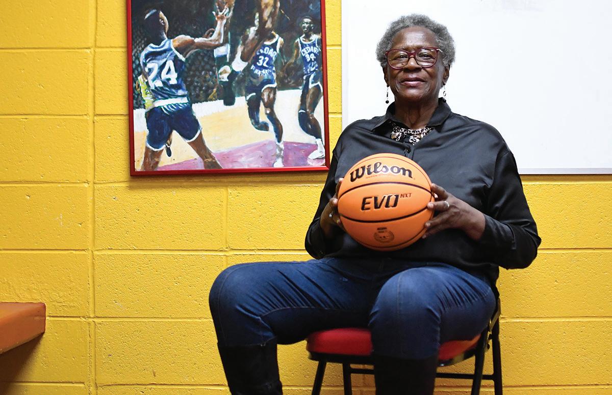 Featured: HONORING HISTORY: Geneva Johnson Eberhart, Athens community member and mother to Clarke Central High School Class of 1992 alumnus and former varsity basketball player Percy Eberhart, poses with a portrait of her son’s likeness displayed in the CCHS boys varsity basketball locker room. When CCHS assistant boys varsity basketball coach and Class of 1991 alumnus Jason Johnson took a coaching role on the team, he made sure to emphasize Percy’s legacy. “That picture means a lot. It kind of keeps his memory alive,” Johnson said. “Whenever you walk in, you’re gonna always look at that picture. That’s important because (Percy) was a key part of our basketball history here.” Photo by Aza Khan