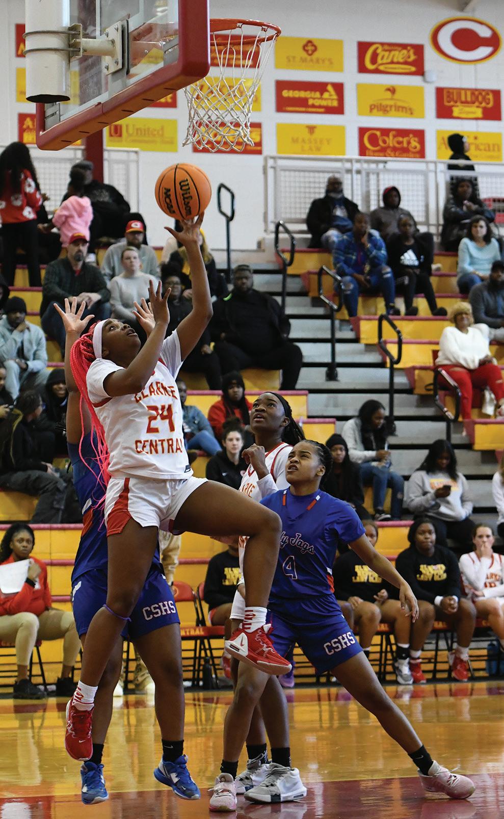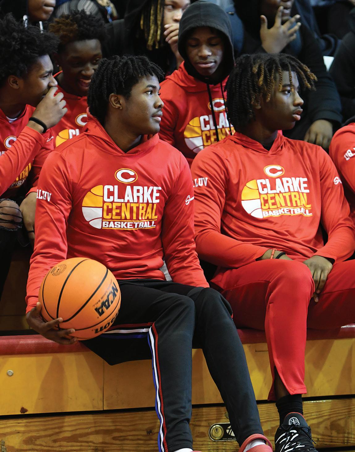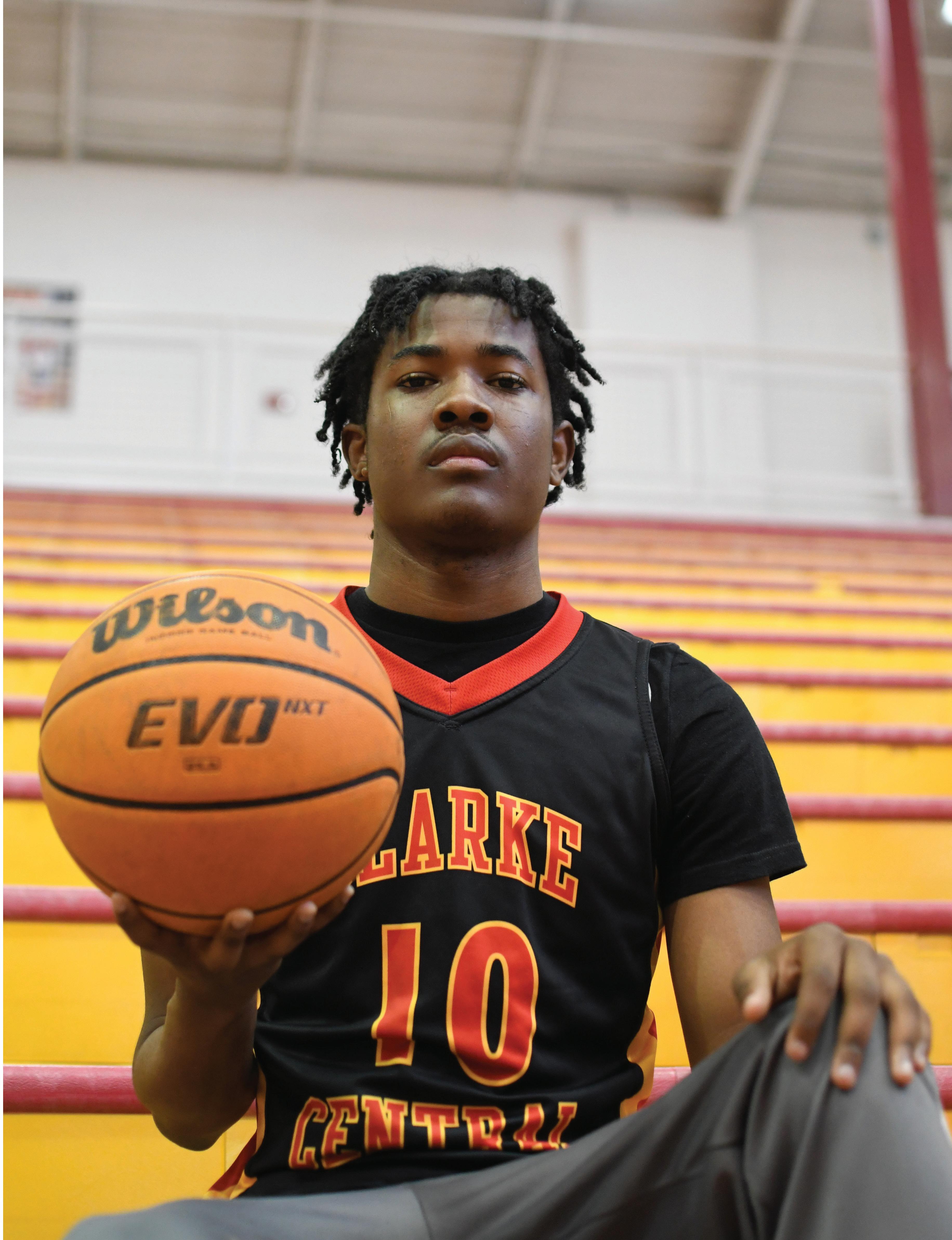 Above: THE HEIR APPARENT: Clarke Central High School boys varsity basketball player Marcus Gillespie, a junior, dribbles down the court during the Gladiators’ game against Seckinger High School on Nov. 29, 2023. Gillespie, who recently scored his 1000th high school point and is attracting interest from universities across the country, still believes he has to do more to be considered among the Gladiators’ all-time greats. “Whatever I do around here, really don’t get too cocky because I was like, I’m not on (former CCHS boys varsity basketball player Percy Eberhart’s) level,” Gillespie said. “I’m proud of myself for being in the same conversation. That makes me feel like I’m doing something right.”