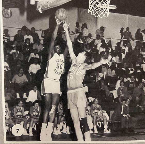 Right: A POINT OF PRIDE: Former Clarke Central High School boys varsity basketball player and Class of 1992 alumnus Percy Eberhart dunks on a defender during the 1991 season. Billy Wade, who coached hundreds of high school basketball players during his 24-year tenure as CCHS head boys varsity basketball coach, believes Percy is one of the best players to come through the school. “People came out to watch him play, people came out to watch Clarke Central,” Wade said. “If you look at attendance while (Percy played for CCHS), we didn’t have any problems.” Photo courtesy of the Gladius Yearbook