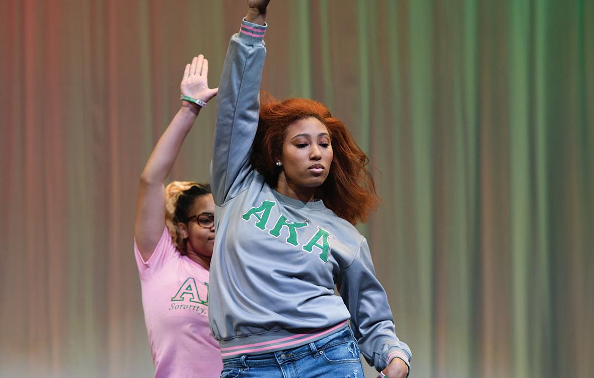 HISTORY THROUGH ART: Dancers from the Alpha Kappa Alpha sorority perform at the Clarke Central