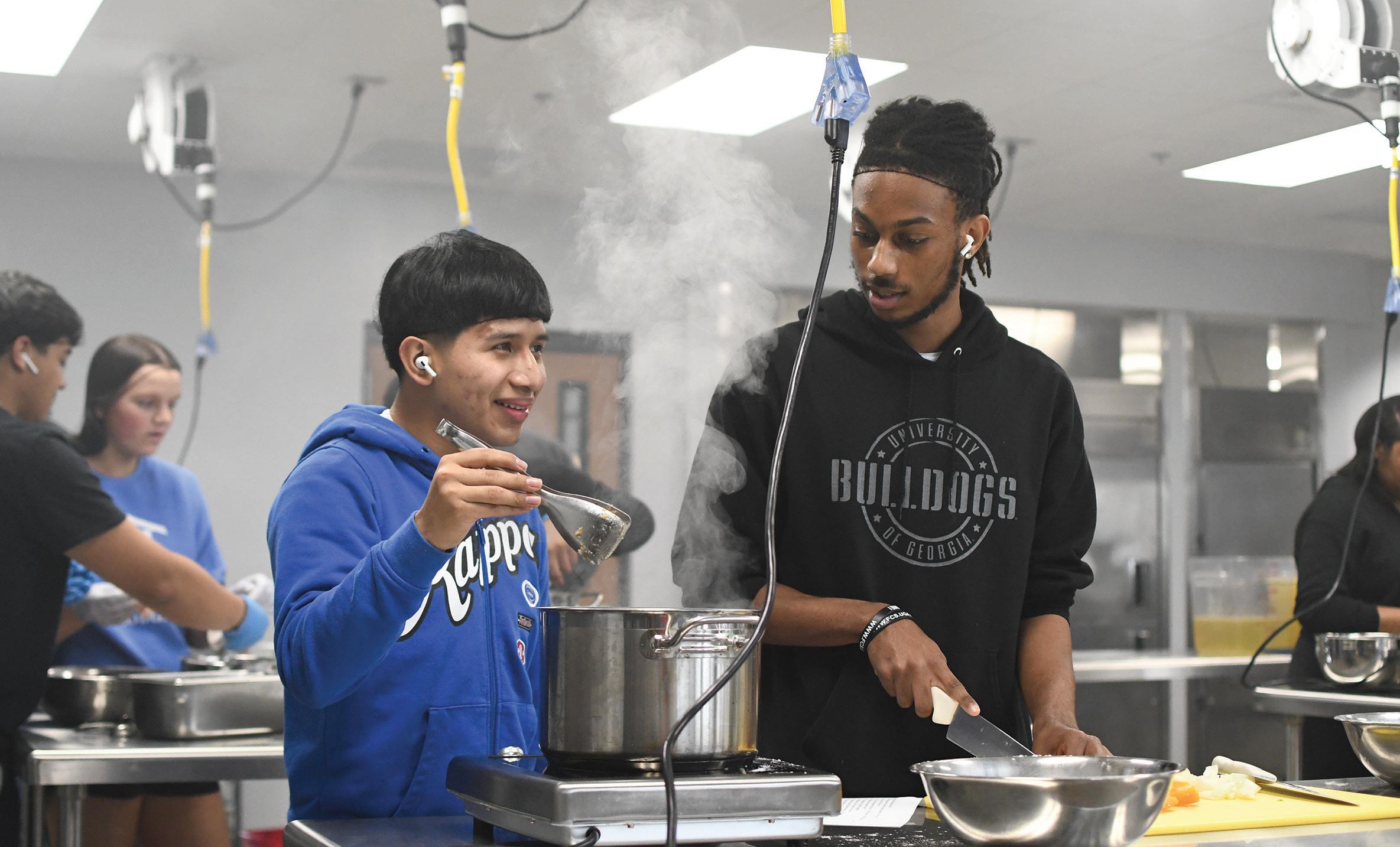 Featured: LET THEM COOK: Athens Community Career Academy students prepare food in the ACCA kitchen on March 5. The kitchen was refurbished, along with the creation of the student-run Yellow Jacket Bistro, as part of a Clarke County School District project.