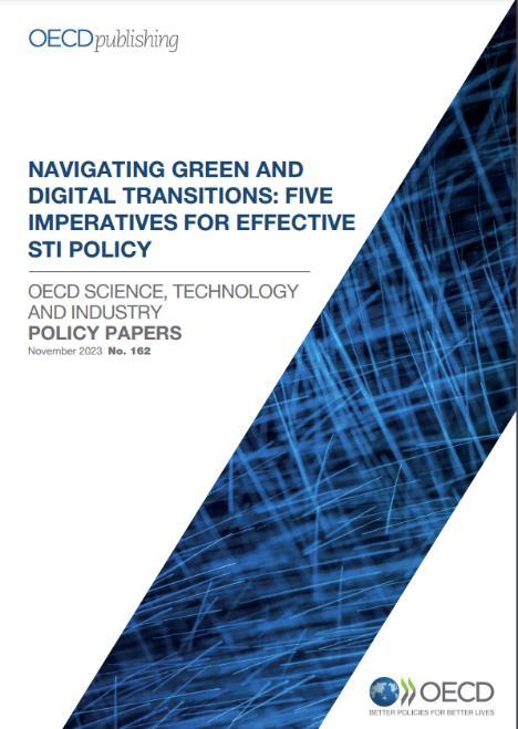 • The paper “Navigating Green and Digital Transitions” discusses imperatives for innovation policy to realise for the green and digital transitions: coordinated government, stakeholder engagement, policy agility and experimentation, directionality and support for breakthrough innovation.