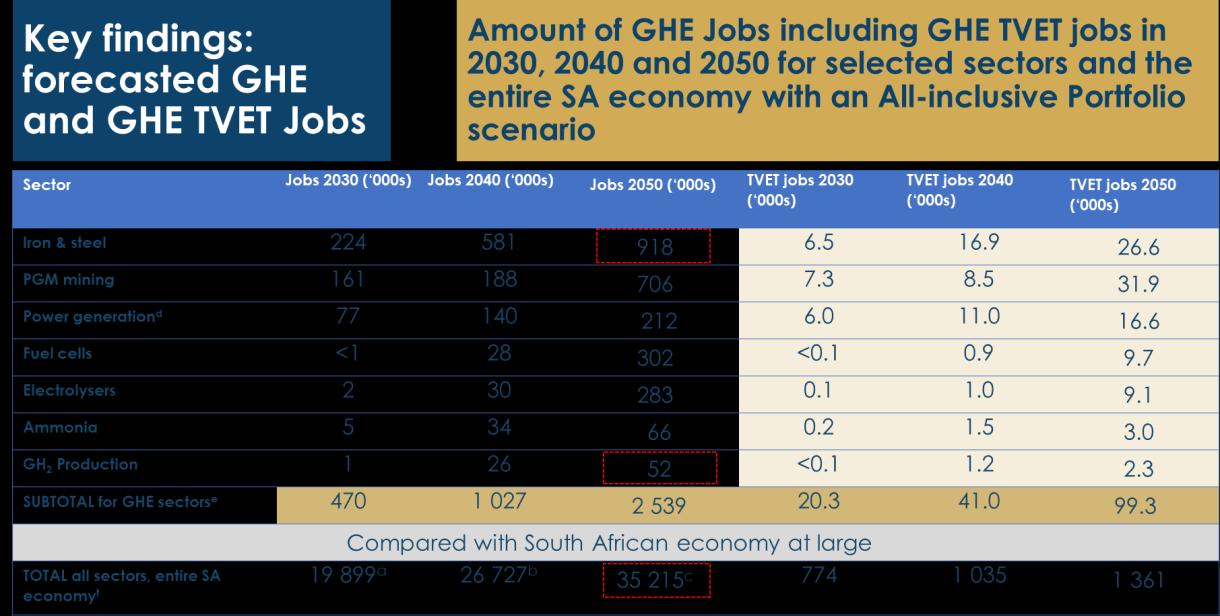 Figure 7. Forecasts of jobs in the green hydrogen economy (GHE) in South Africa