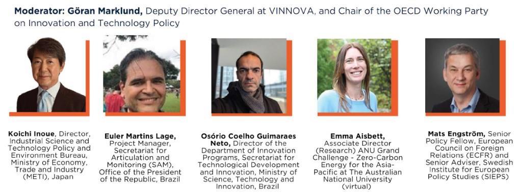 Session 1 focused on the macro-conditions for green moonshots by focusing on an overview of substantive resources governments and the private sector have pledged following the COVID-19 crisis The keynote speakers (see Figure 1) provided an overview of respective developments in Japan, Brazil, Asian and Europe.