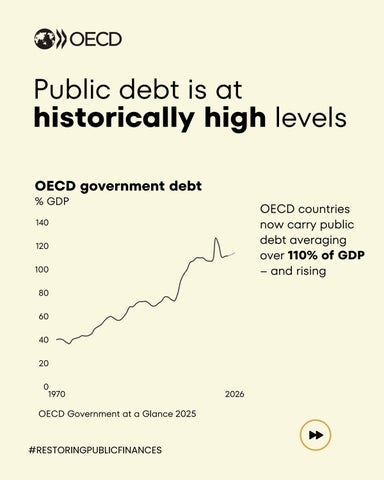 Note: The baseline scenario assumes no policy changes, with age-related costs estimated using the OECD long-term model baseline. The structural reforms scenario incorporates key policy recommendations on pensions, taxes and the labour market, as outlined in the Survey. These include increasing the relative importance of earnings-related pensions, phasing out mortgage interest deductibility, closing the gap in property tax revenues against the OECD average by one-third by 2030, closing the gap in the labour tax wedge against the OECD average by half by 2030, easing rental regulations, and strengthening active labour market policies. The fiscal rule scenario also assumes that fiscal policy complies with a balanced budget target. The model parameters rely on simplified assumptions standardised across OECD countries.