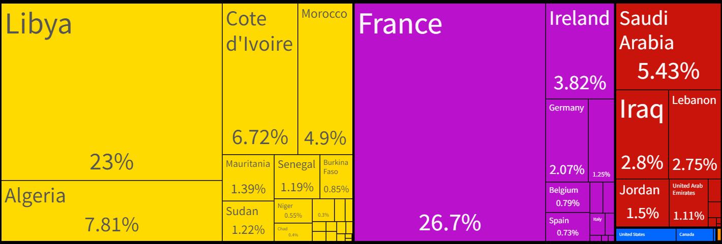 Figure 3: Tunisian exports of pharmaceutical products, by destination, 2019
