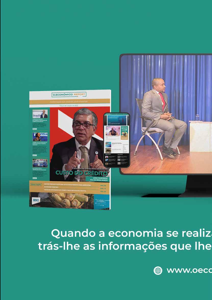 A Informação O JAVIER AYALA Gestor do programa BRILHO e Líder de Energia em SNV Moçambique News Inside A SOLUÇÃO FORA DA REDE DE ACESSO À ELECTRICIDADE JÁ NÃO É MARGINAL ENDIVIDAMENTO DO SECTOR PÚBLICO MANTÉM PRESSÃO SOBRE O SISTEMA FINANCEIRO NACIONAL PAG. 10 PAG. 39 REESTRUTURAÇÃO DAS EMPRESAS DO ESTADO É UMA PRIORIDADE PAG. 62 BIOFUND ALOCA US$ 16 MILHÕES PARA A CONSERVAÇÃO DA BIODIVERSIDADE EM 2023 PAG. 76