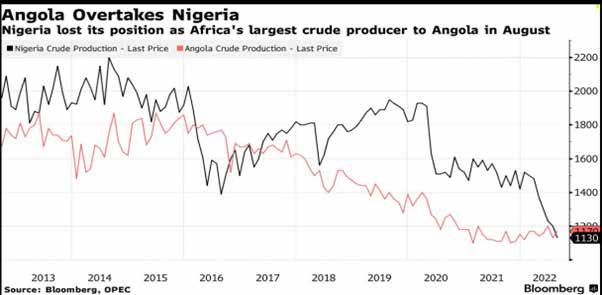 A Angola tornou-se, recentemente, em Agosto, o maior produtor e exportador de petróleo em África, trocando de posição com a Nigéria. Como um grande produtor e exportador de petróleo, a Angola viu a sua moeda, kwanza, estável face ao dólar apoiado pelos preços elevados do petróleo, o que ajudou significativamente para a estabilidade de preços no país. Para alem disto, o país registou subidas nas suas classificações de crédito, tendo passado de Estável para Positivo, em Julho.