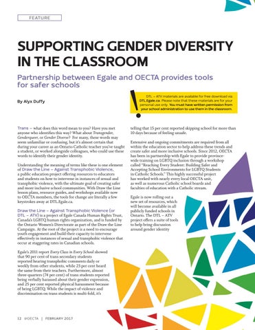 SUPPORTING GENDER DIVERSITY IN THE CLASSROOM Partnership between Egale and OECTA provides tools for safer schools By Alyx Duffy