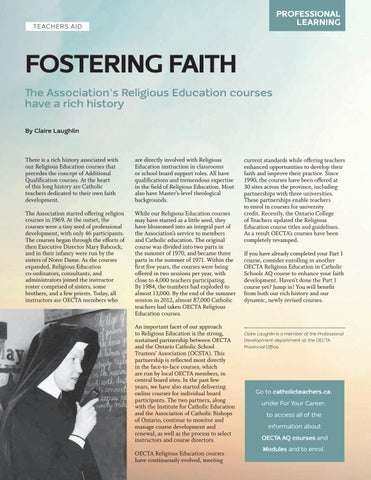 FOSTERING FAITH The Association’s Religious Education courses have a rich history By Claire Laughlin