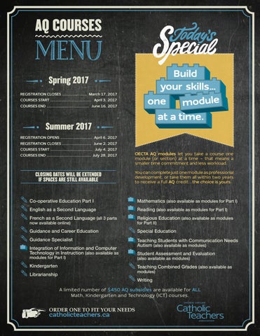 Writing A limited number of $450 AQ subsidies are available for ALL Math, Kindergarten and Technology (ICT) courses.