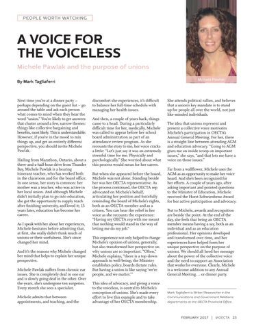 A VOICE FOR THE VOICELESS Michele Pawlak and the purpose of unions Michele Pawlak