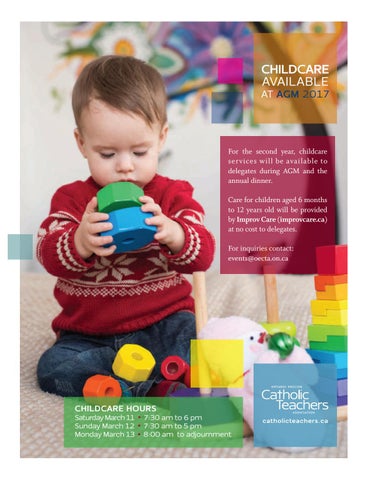 For the second year, childcare services will be available to delegates during AGM and the annual dinner. Care for children aged 6 months to 12 years old will be provided by Improv Care (improvcare.ca) at no cost to delegates. For inquiries contact: events@oecta.on.ca