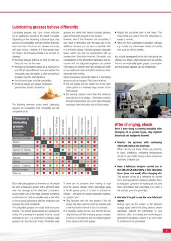 Some precautions should be taken if a lubricating grease must be changed. First check whether: