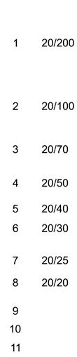 20/30 Decreased reading speed Difficulty descending Minimum BCVA for a driver license in 47 states Difficulty inserting a plug Decreased facial recognition Difficulty ascending stairs Difficulty walking Difficulty inserting a key Difficulty dialing a telephone 20/100 20/40 20/40 20/200 20/40 20/60 20/100 DISABILITY VISUAL ACUITY IMPACT OF DECREASED VISUAL ACUITY