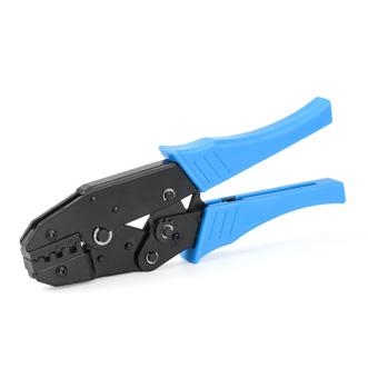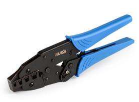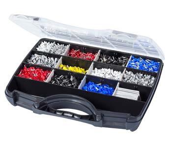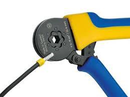Wire stripper and crimper with 4 functions: cutting - stripping - 62000 twisting - crimping. Working range: wires with insulation made of PVC from 0.5 to 2.5 mm² (AWG 20 - 14). Set with end sleeves and switching magazines