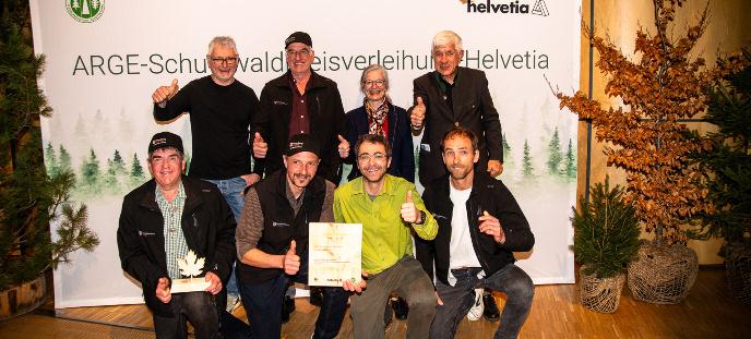 Bei der Helvetia Schutzwaldpreisverleihung war die Seilkranparty der Mittel und Vorderwälder Wadaufseher bei den Preisträgern –wir gratulieren zur gelungenen Umsetzung!