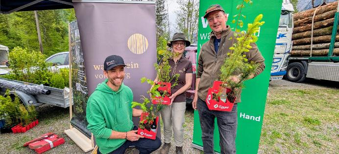 Eine originelle und wirksame Kommunikationsaktion wurde beim heurigen Bregenzerwälder Forsttag gewählt, der zusammen mit Forstarbeiterlandesmeisterschaften am 3 Mai in Mellau stattfand