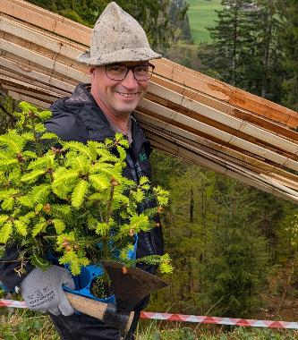 Die Aufforstungsaktion der Mitarbeiter/innen und Funktionär/-innen der Landwirtschaftskammer Vorarlberg im Rahmen des 100 Jahre Jubiläums im heurigen Jahr auf der Alpe Krähenberg bei Sibratsgfäll soll ein Zeichen für den gelebten nachhaltigen Umgang in der Land- und Forstwirtschaft sein In diesem Sinne freut sich LK-Präsident Josef Moosbrugger über die Aktion Infos zu 100 Jahre Landwirtschaftskammer Vorarlberg im Internet unter www.100jahre-lkvorarlberg at/