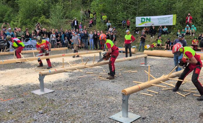 Die Bedeutung der Forstfacharbeit für eine aktive Waldbewirtschaftung wurde mit ca 50 Teilnehmern bestätigt Präzession, Geschicklichkeit, Schnelligkeit aber auch die Sicherheit bei der Motorsägenarbeit standen im Mittelpunkt. Daneben wurden auch Showbewerbe mit Kettenwechsel, Baumklettern oder Beißen mit Sapin durchgeführt Auch eine Showvorführung mit einer Holzbringung mit Pferd wurde vorgezeigt