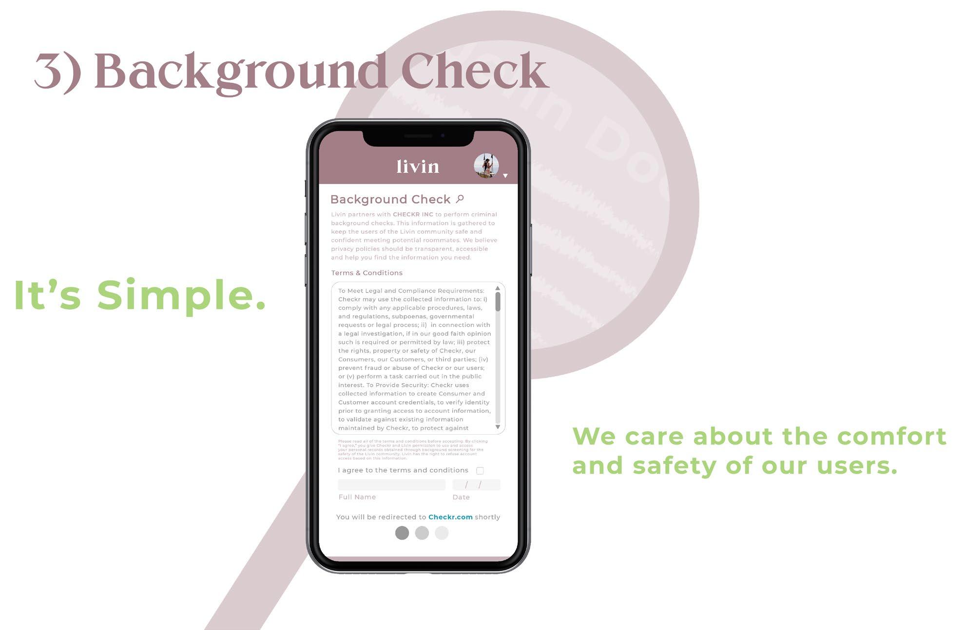Livin was designed to help freshly graduated undergraduate and graduate college students (ages 20 to 31) find roommates as they turn the page to the next chapter of their life. This app was aimed to attract this age range, through a modern, sleek, and simplistic interface. The user journey includes only a few simple steps. Through a series of questions, the app will ultimately give the user a compatibility score with potential roommates, easily establishing transparency, as well as eliminating awkward and timely “get to know you” questions. Just sit back, relax, and answer the questions. Livin will do the rest!