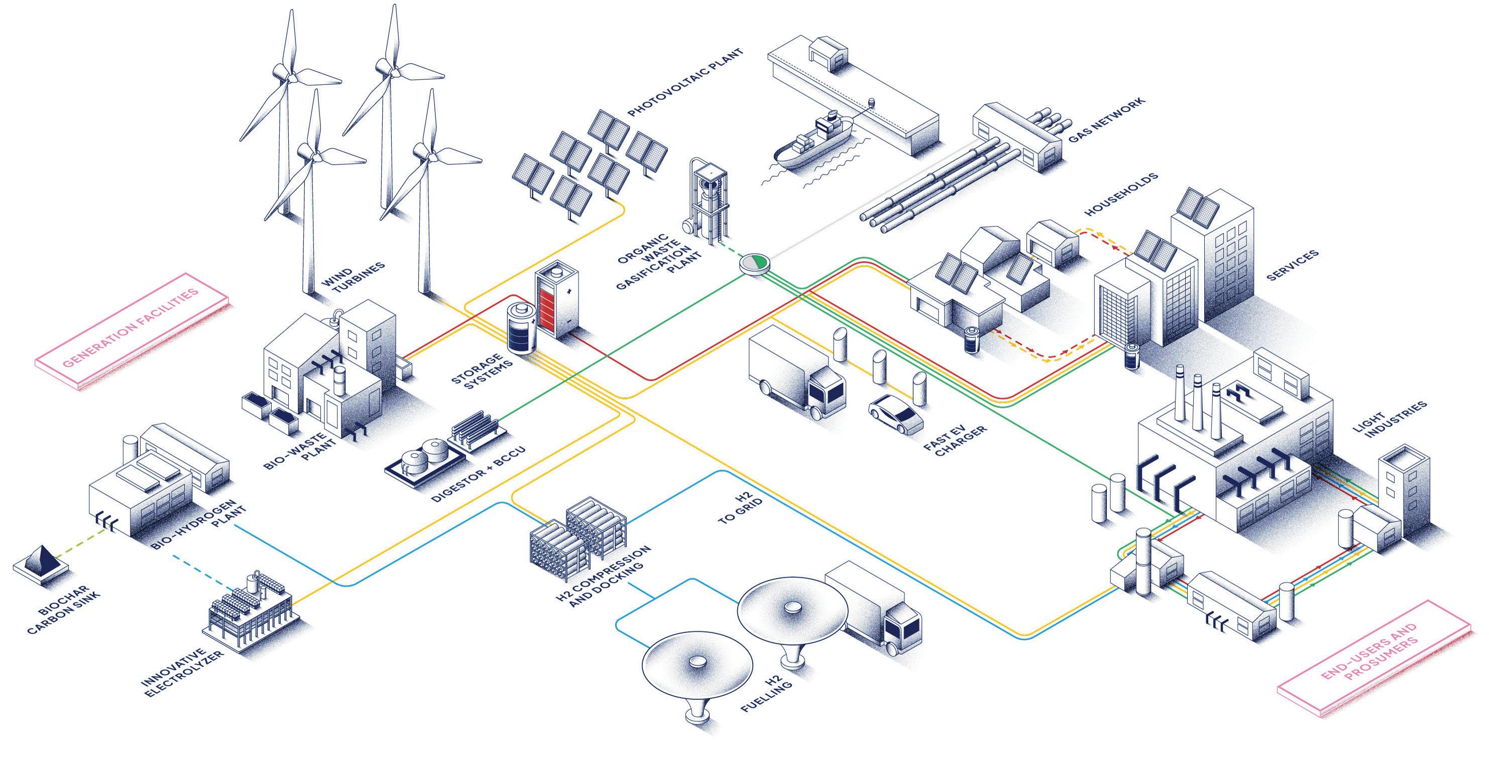Europa’s proeftuin voor de toekomst van energie. Er gebeurt namelijk iets bijzonders, Europa’s eerste volledig geïntegreerde energievallei wordt hier gerealiseerd. Met 20 miljoen euro Europese subsidie en 45 miljoen publiek-private investeringen transformeert het bedrijventerrein en omgeving tot een blauwdruk voor heel Europa. Joep Sanderink, coördinator van het REFORMERS-project vanuit New Energy Coalition: “In de energietransitie hebben we het altijd over windmolens en zonnepanelen. Maar een toekomstbestendig energiesysteem bestaat niet alleen uit elektriciteit. Het gaat juist om de integratie van verschillende energiedragers: elektriciteit, warmte, waterstof én groen gas.”
