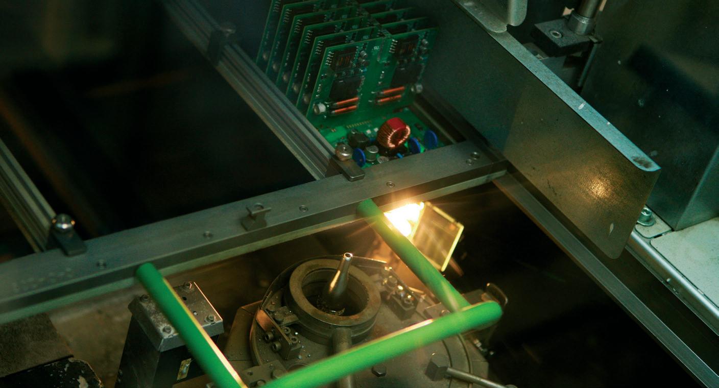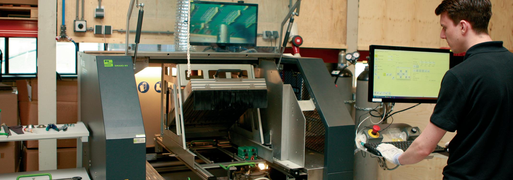 Tot voor kort werd er in de productiehal nog veel met de hand gewerkt. “Nu staat hier een selective wave soldeermachine”, vertelt Fred. “We noemen de machine de Uma, vernoemd naar een collega die vorig jaar terugverhuisde naar Thailand nadat ze zeventien jaar bij ons had gewerkt. Uma kon ongelofelijk snel assembleren en solderen. Toen zij wegging konden we geen vervanger