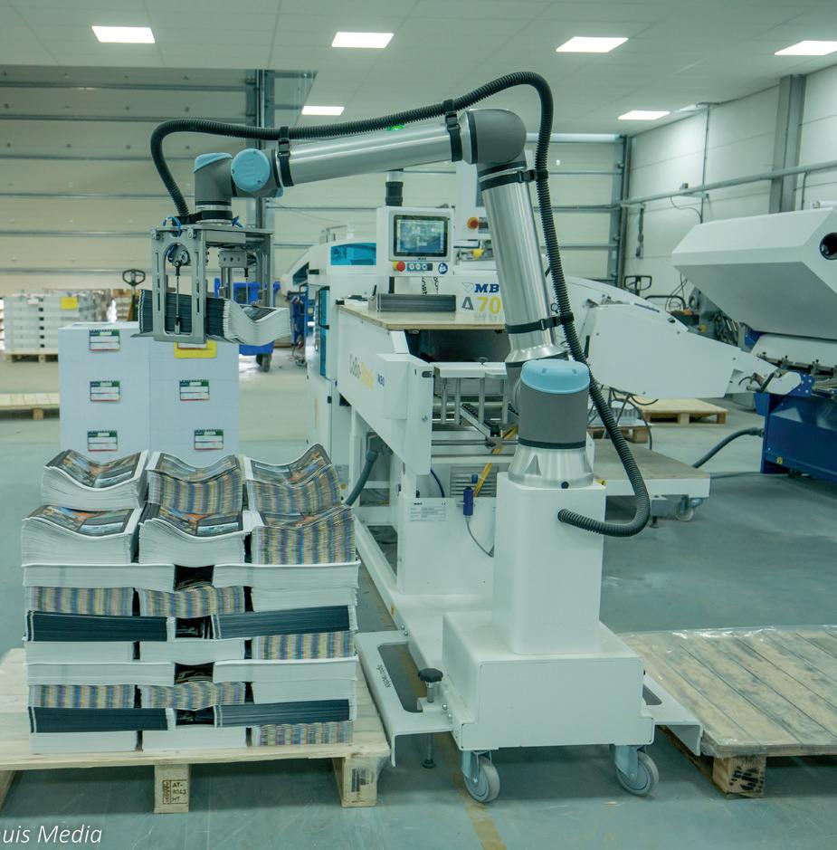 In Meppel draaien bijna continu vier identieke, hypermoderne 8-kleuren Komori-persen, die dubbelzijdig 70 × 100 vellen bedrukken met zestien pagina’s tegelijk. Een vijfde enkelzijdige offsetdrukpers completeert het machinepark. “We zijn altijd vernieuwend, dankzij een volledig geautomatiseerde workflow, moderne drukpersen, high-speed vouwmachines, lamineerlijnen, geavanceerde brocheer- en hechtlijnen, in-house adresverwerking en onze eigen software”, legt Robert Schipper, Operations Excellence Manager, uit. “Maar het verschil zit niet alleen in de machines, maar vooral in ons beleid en de mensen die hier werken. En we blijven continu investeren in opleiding, automatisering en duurzaamheid. We hebben bijvoorbeeld een