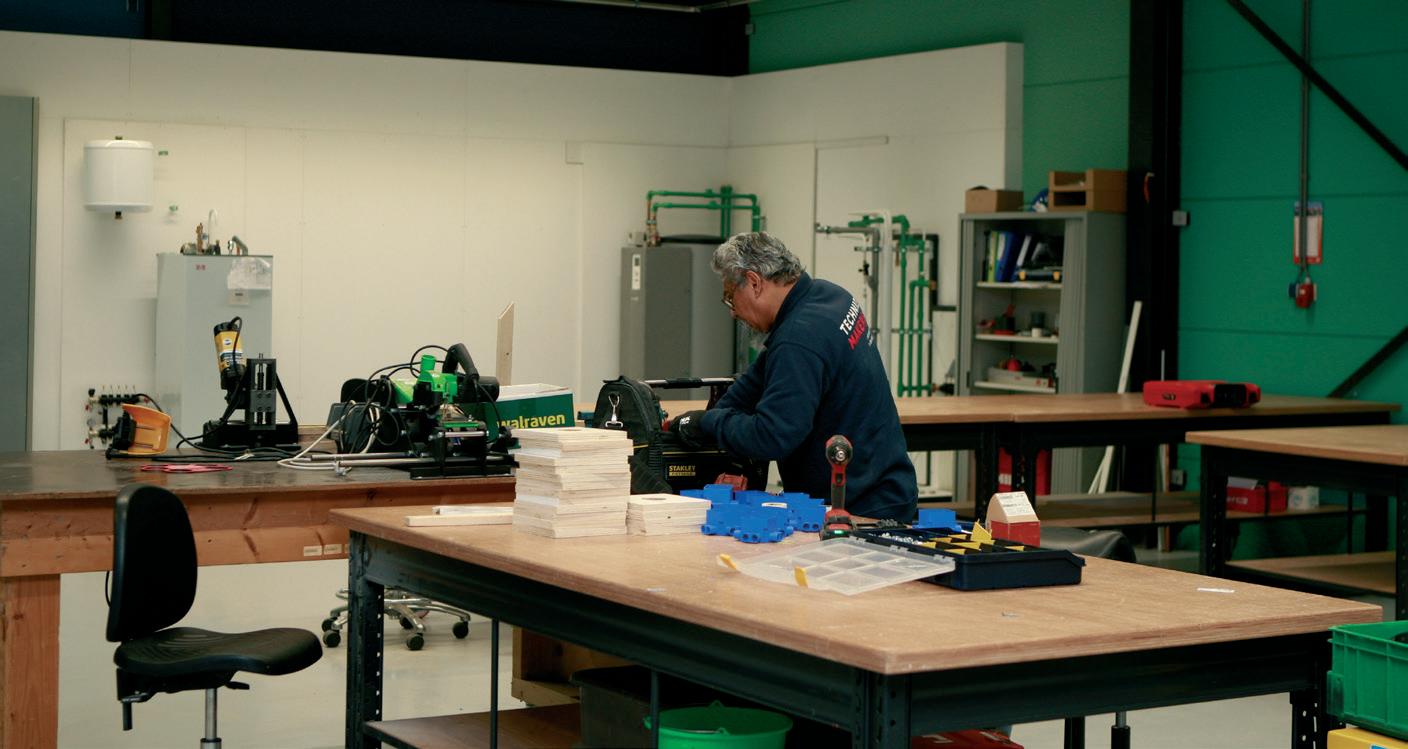 De nieuwe werkplaats biedt meer ruimte voor efficiënt prefabben van RVS- en Aquatherm-leidingwerk. Dankzij een zwaardere stroomaansluiting kunnen gereviseerde pompen met hogere vermogens worden getest voor maximale betrouwbaarheid.