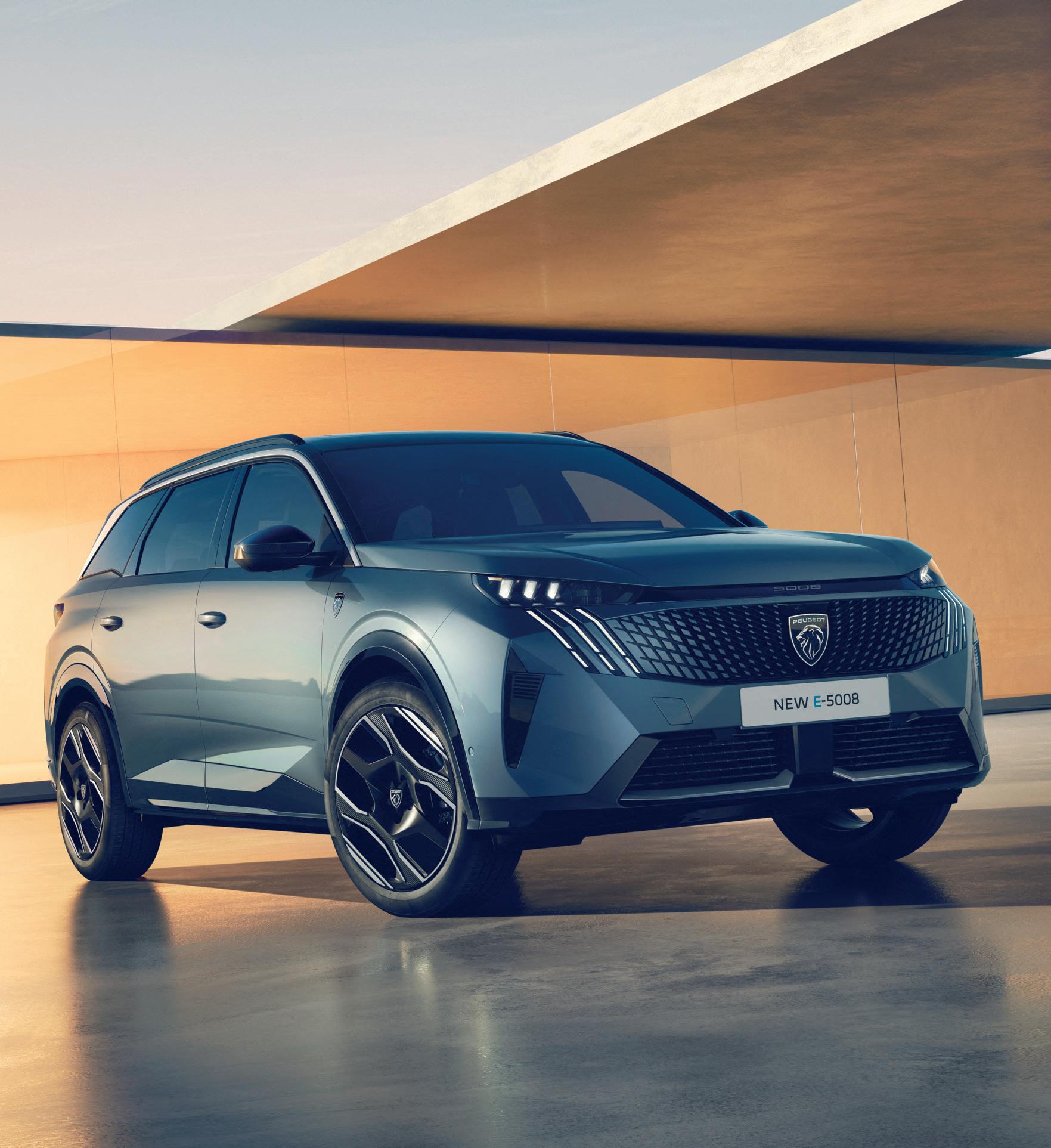 Ontdek de nieuwe Peugeot E-5008, een indrukwekkende en robuuste SUV die kracht en veiligheid belichaamt. De E-5008 is binnenkort beschikbaar als 100% elektrisch, met een indrukwekkende actieradius tot maar liefst 502 km, en als Hybrid en Plug-in Hybrid. Later zal deze SUV ook beschikbaar zijn als 100% elektrische Dual Motor met vierwielaandrijving, en als all-electric Long Range-model met een actieradius tot wel 660 km. Met ruimte voor 7 passagiers en een elegant silhouet biedt hij het beste van beide werelden. De gloednieuwe Peugeot Panoramic i-Cockpit® zorgt voor een optimale rijervaring, terwijl de nieuwe dunne Pixel LEDkoplampen een unieke uitstraling aan de E-5008 geven. Bereid je voor om weggeblazen te worden door zijn prestaties en elegantie.