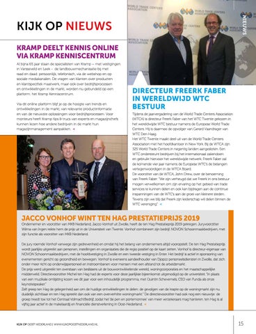 KIJK OP NIEUWS KRAMP DEELT KENNIS ONLINE VIA KRAMP KENNISCENTRUM Al bijna 65 jaar staan de specialisten van Kramp – met vestigingen in Varsseveld en Leek - de landbouwmechanisatie bij met raad en daad: persoonlijk, telefonisch, via de webshop en op sociale mediakanalen. De vragen van klanten over producten en klantspecifiek maatwerk, maar ook over bedrijfsprocessen en ontwikkelingen in de markt, worden nu gebundeld op een platform: het Kramp Kenniscentrum. Via dit online platform blijf je op de hoogte van trends en ontwikkelingen in de markt, van relevante productinformatie en van de nieuwste oplossingen voor bedrijfsprocessen. Voor monteurs heeft Kramp tips & trucs van experts en magazijnchefs kunnen lezen hoe andere bedrijven in de markt hun magazijnmanagement aanpakken. <