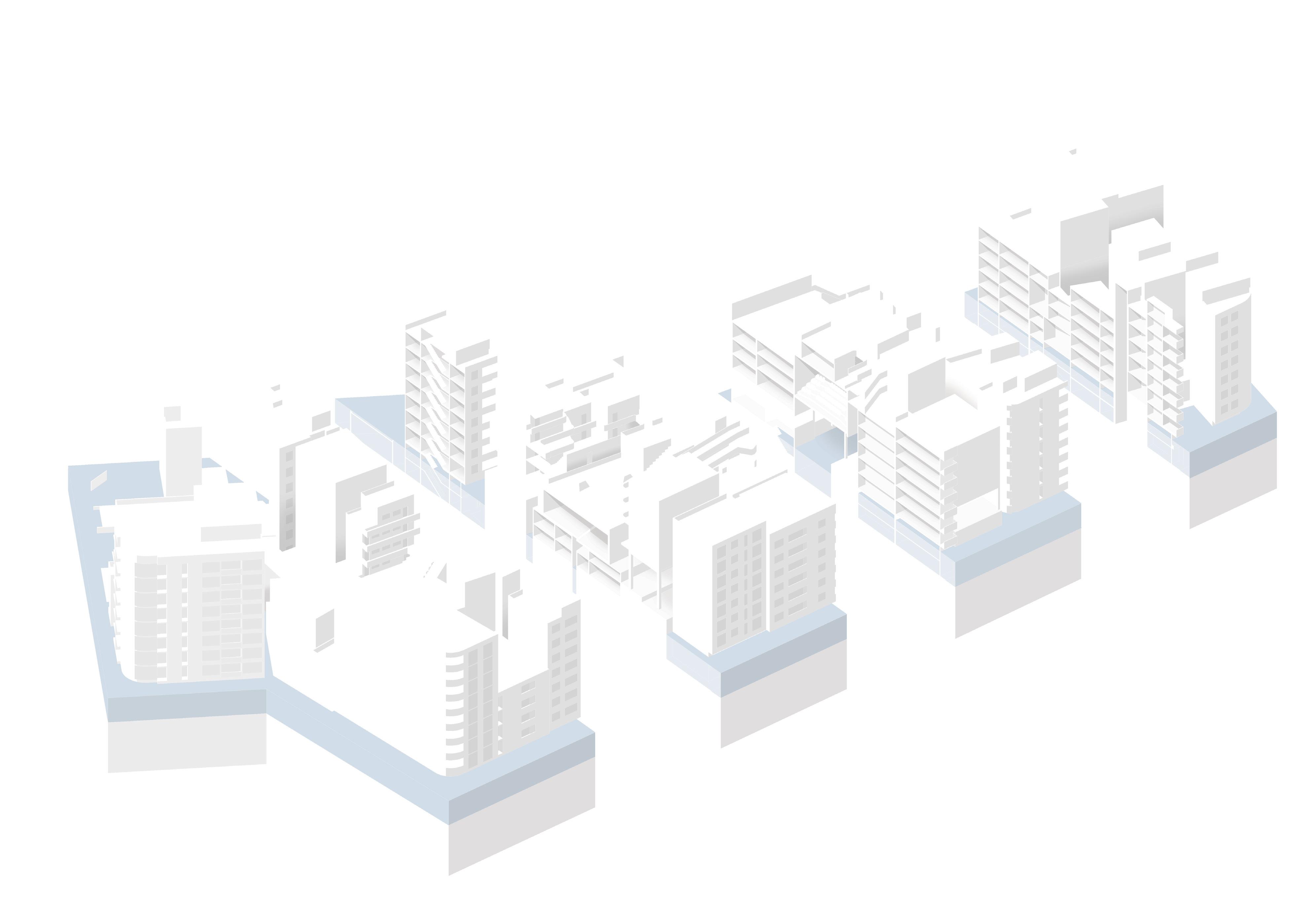 4. Within a number of buildings, there must be a void between the buildings to allow light through the canopy and into the lower buildings within the mass.