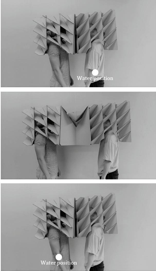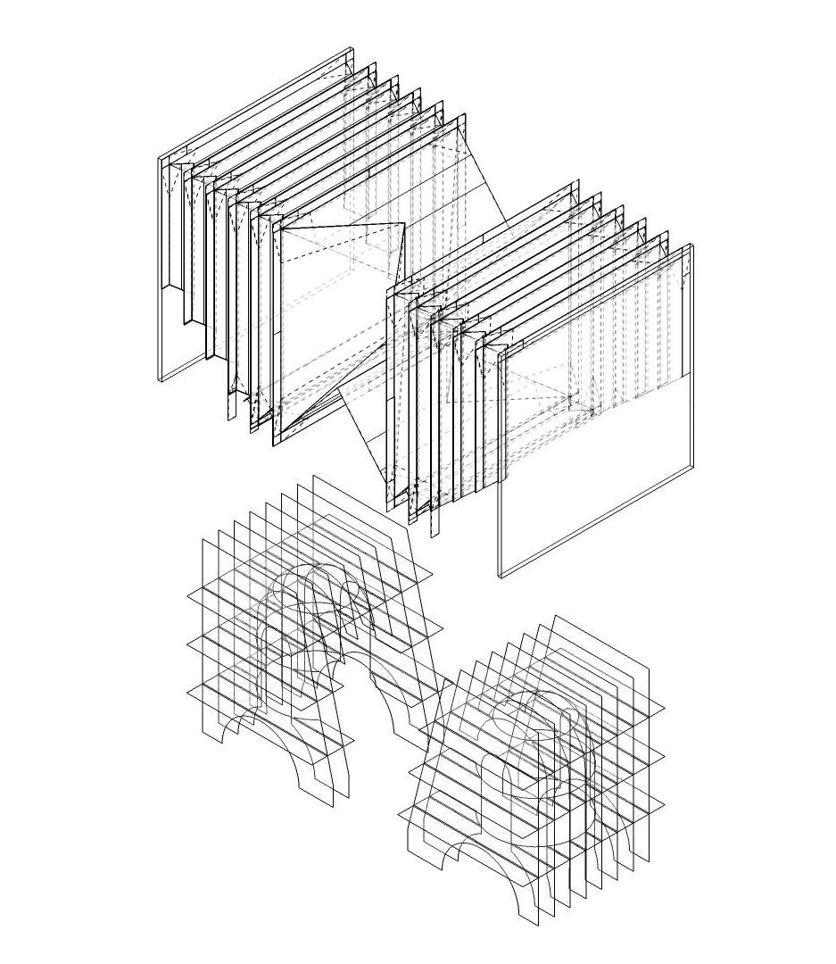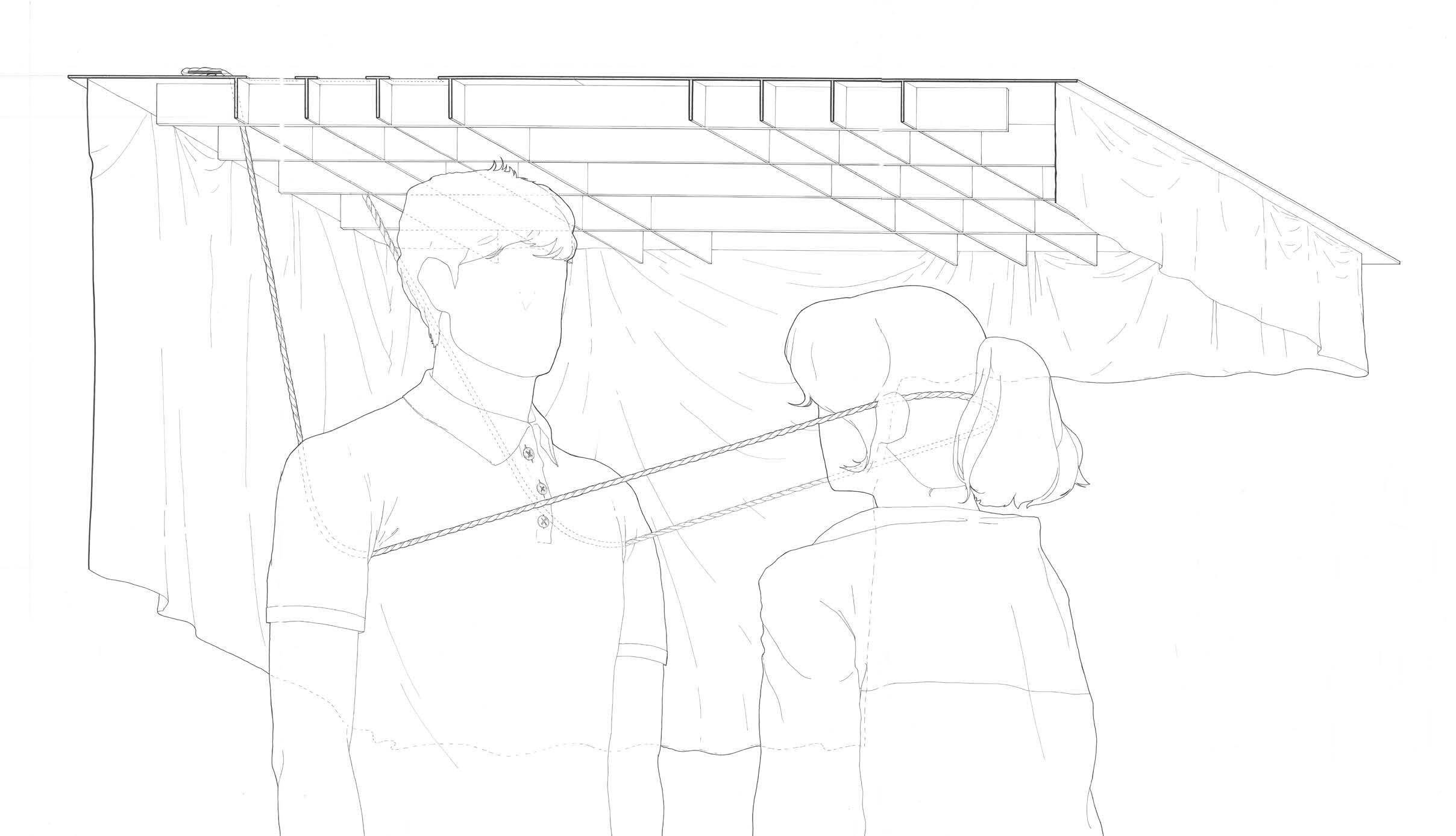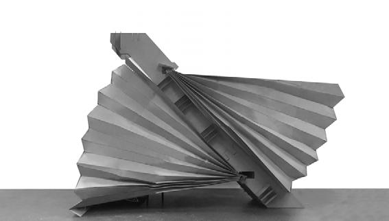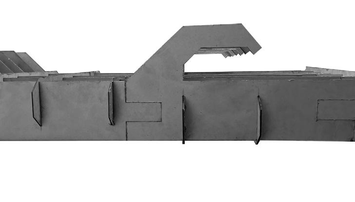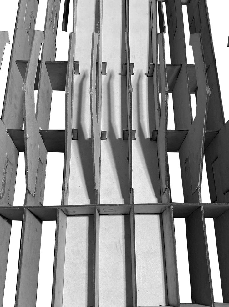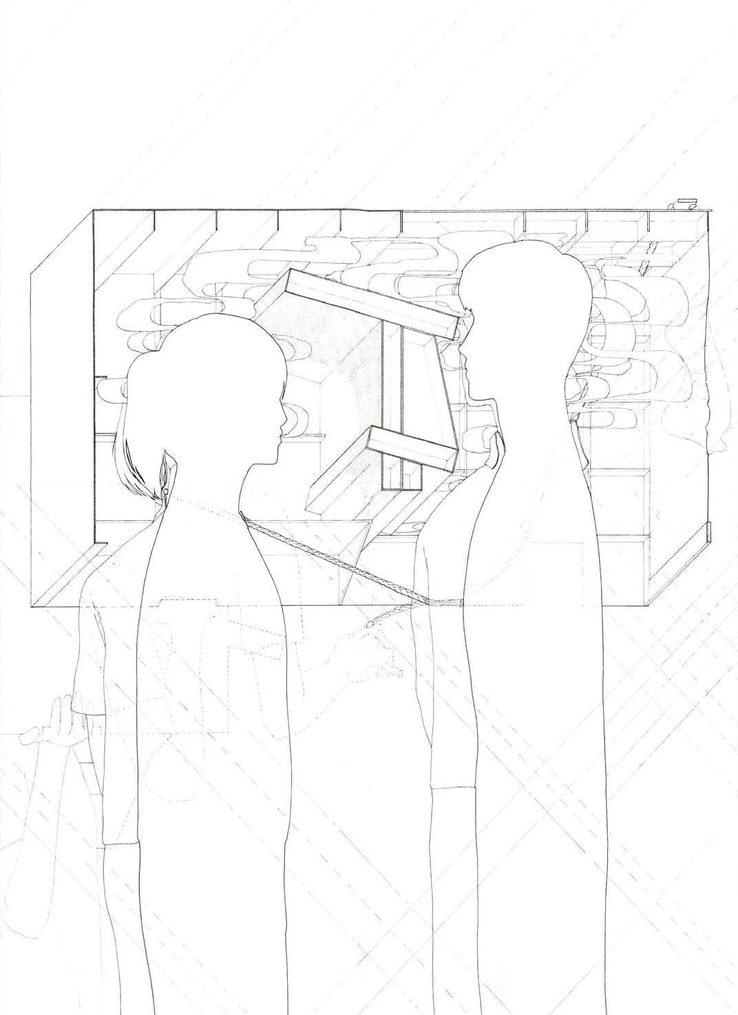 Bearing in mind the relationship between the form of a double wall and a chase, we sought to improve the coherence of our design. e structure also became rather unwieldy to carry around, hence we would reduce its scale.