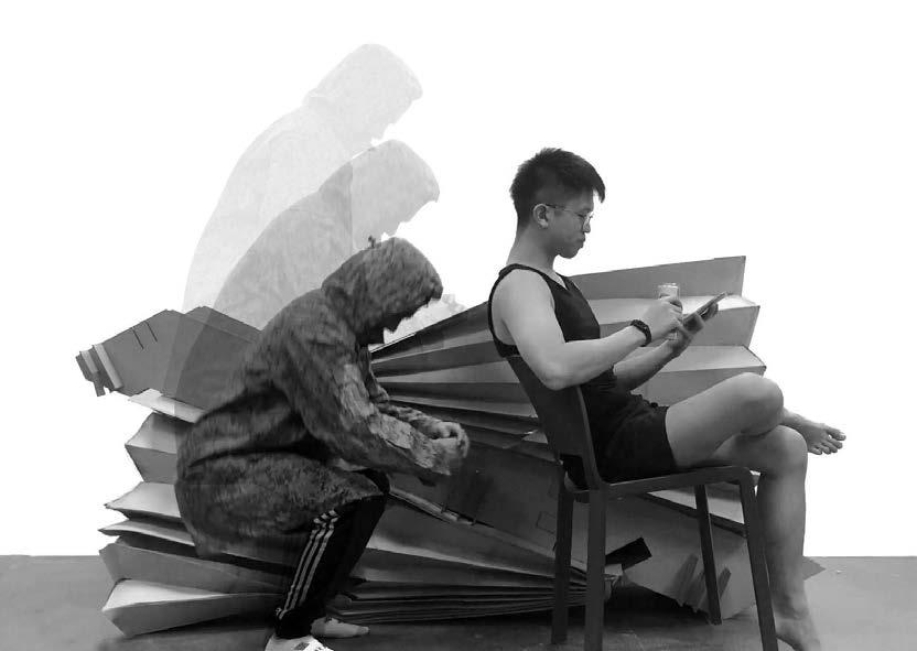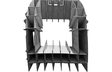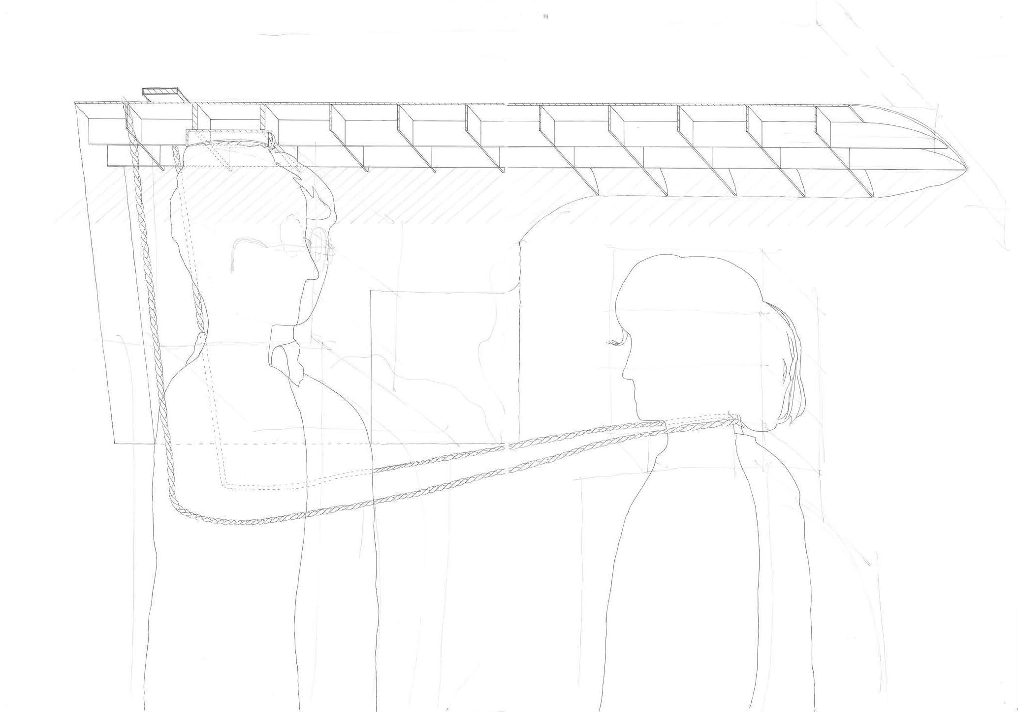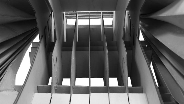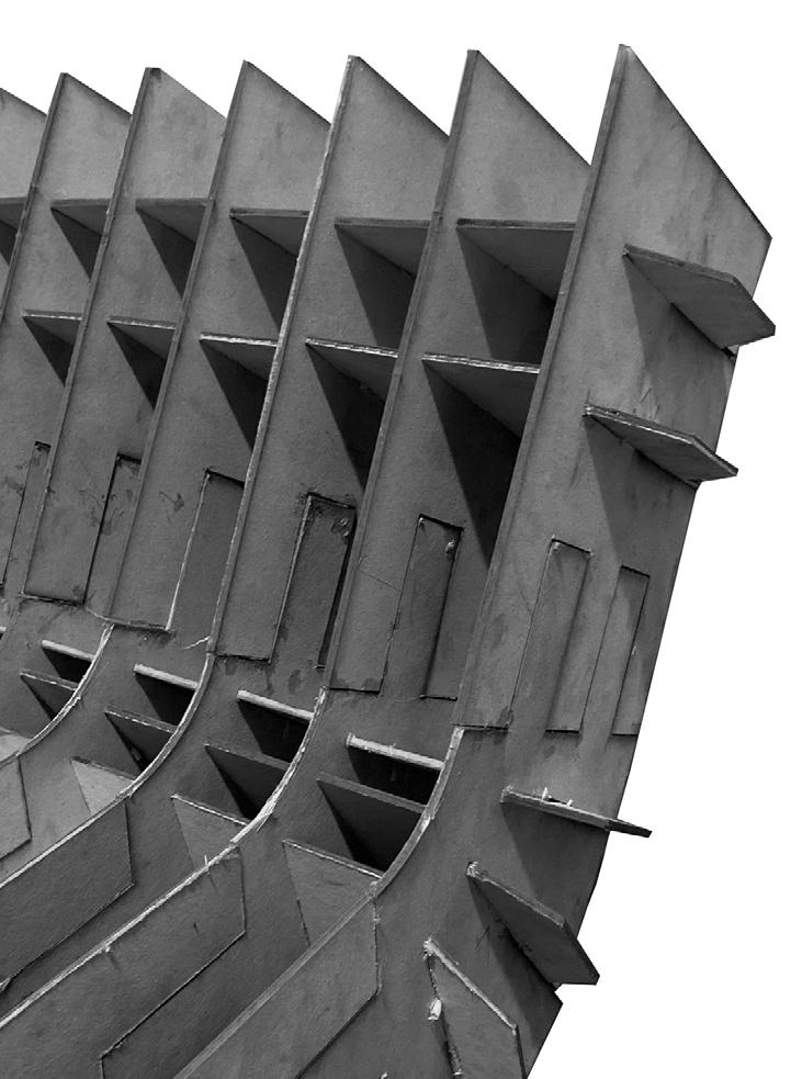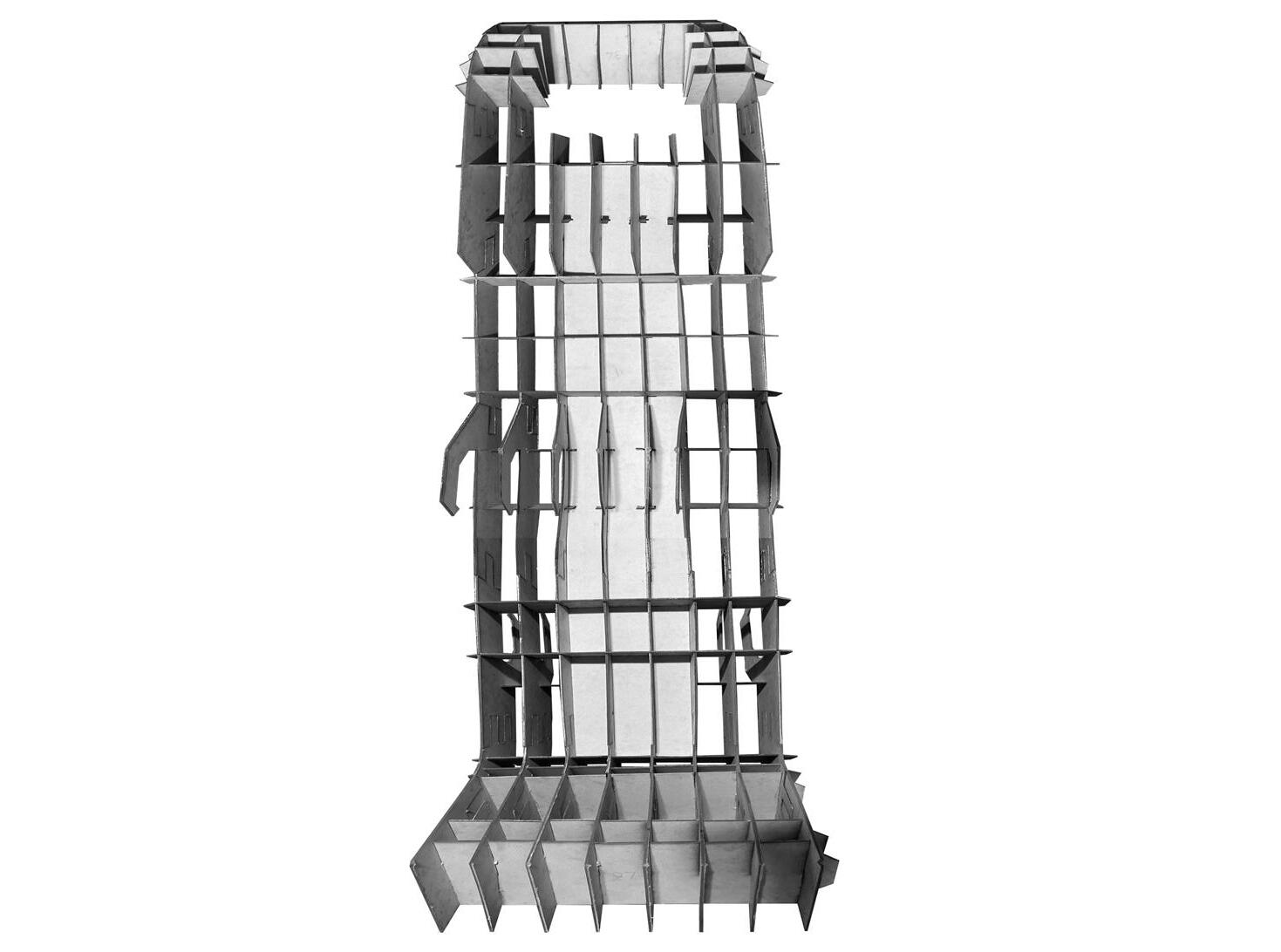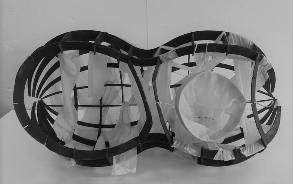 Bearing in mind the relationship between the form of a double wall and a chase, we sought to improve the coherence of our design. e structure also became rather unwieldy to carry around, hence we would reduce its scale.