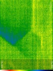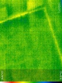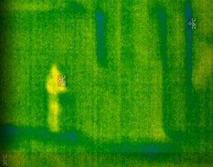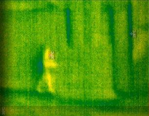 Thermal imaging successfully captures a still person outside the envelope. A heat map showing temperature differences is clearly seen - yellow (30 °C) for where the person is and green (29 °C) for the ambient surroundings.