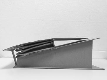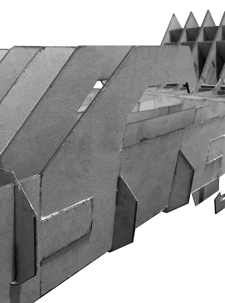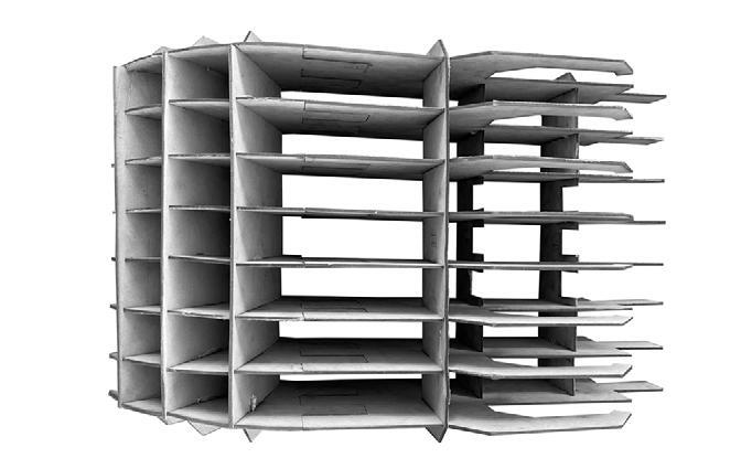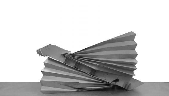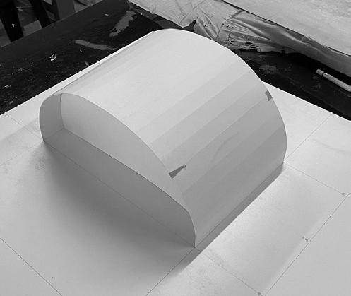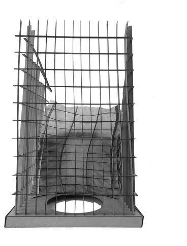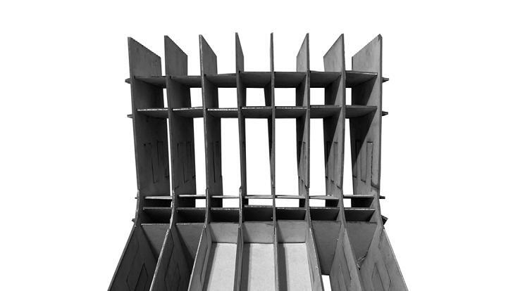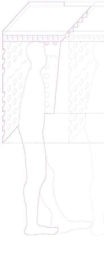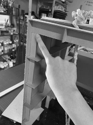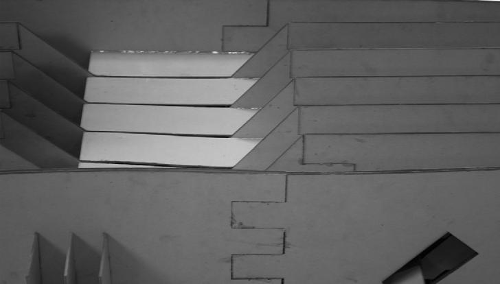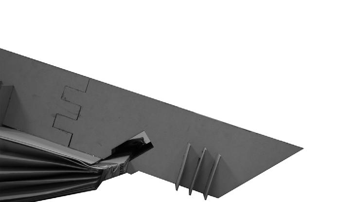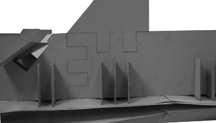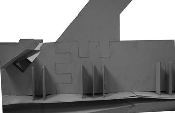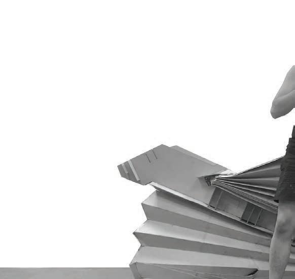 Further re ning of the unfolding platforms is required with regard to how they are withdrawn from the structure. e probe presently involves li ing them via handgrips positioned only on their front faces, which is rather unwieldy given their weight. A more bodily precise calibration of the greyboard mat can also be done by concentrating scoring on areas where the body lands. Finally, this so er version of greyboard can be used for the platforms as well, as was seen in our nal model.
