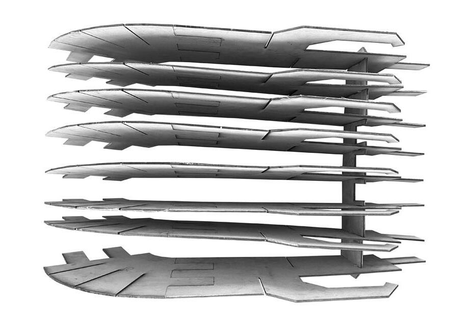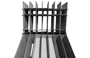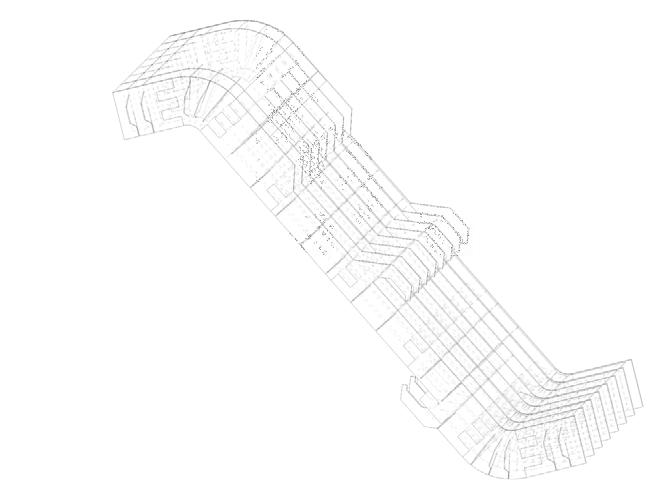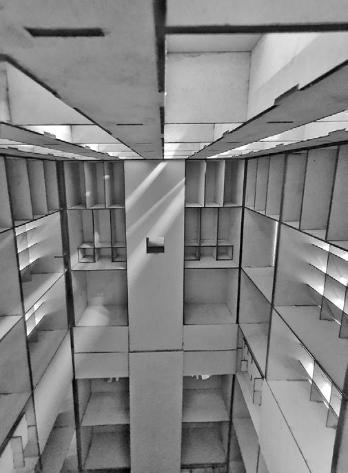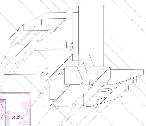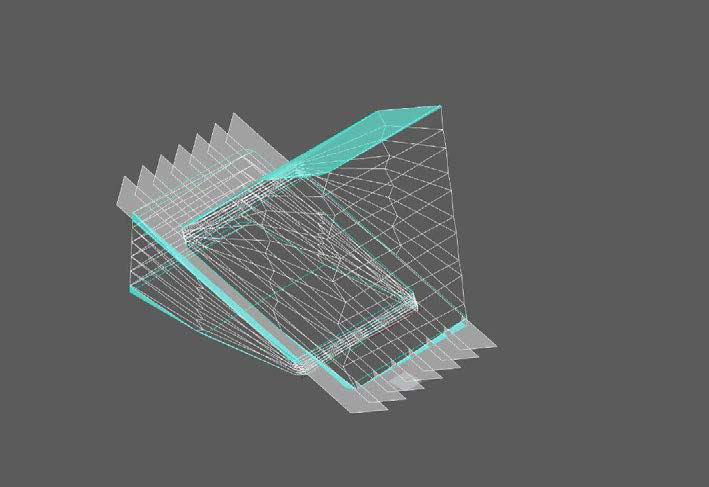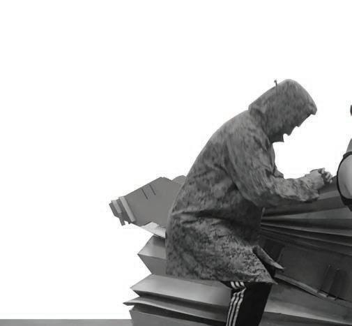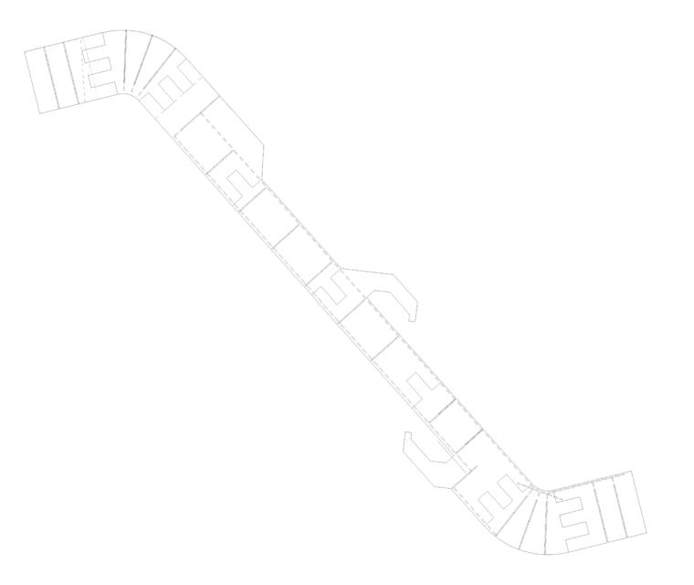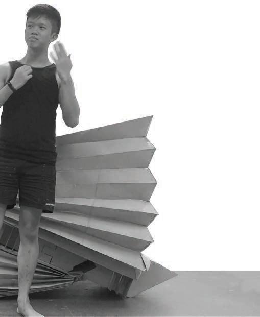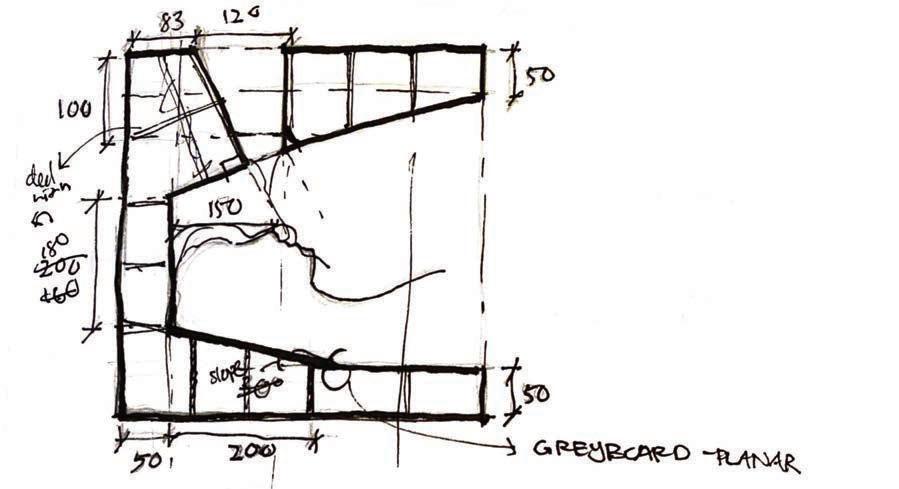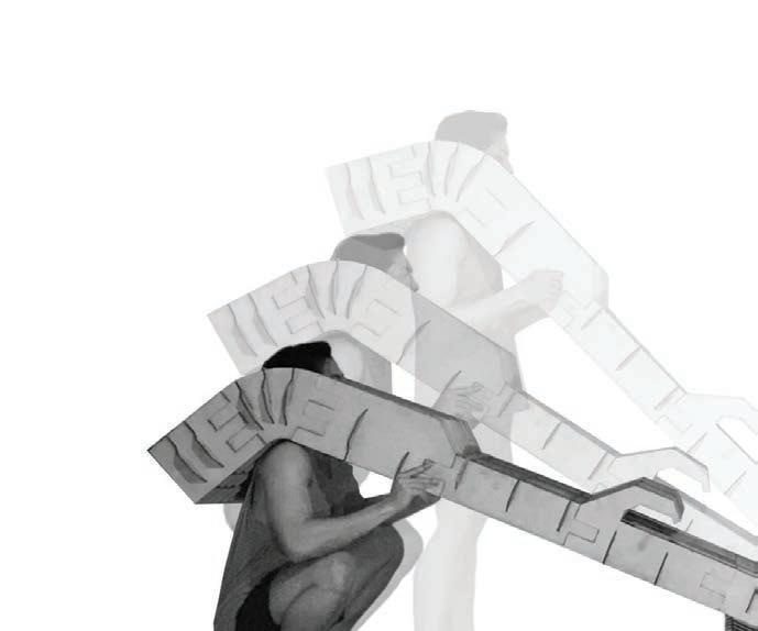 Further re ning of the unfolding platforms is required with regard to how they are withdrawn from the structure. e probe presently involves li ing them via handgrips positioned only on their front faces, which is rather unwieldy given their weight. A more bodily precise calibration of the greyboard mat can also be done by concentrating scoring on areas where the body lands. Finally, this so er version of greyboard can be used for the platforms as well, as was seen in our nal model.