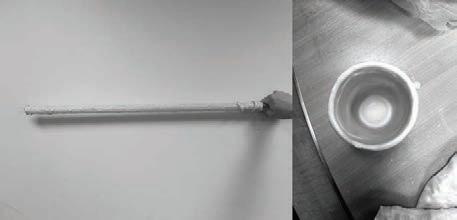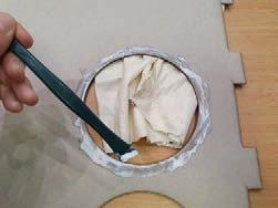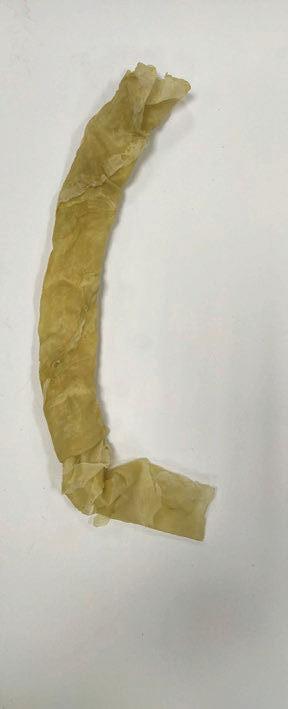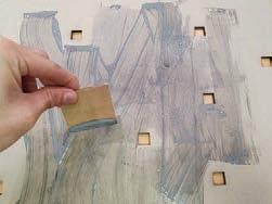 Greyboard joins poorly when angled. Latex is used to help seal the gaps le by these awkward angles and improve the structural integrity of the probe. Greyboard is also scored and infused with latex on both sides to create a solid surface that yields to the body, while still allowing the greyboard to perform as a double wall. is process was retained for the nal model.