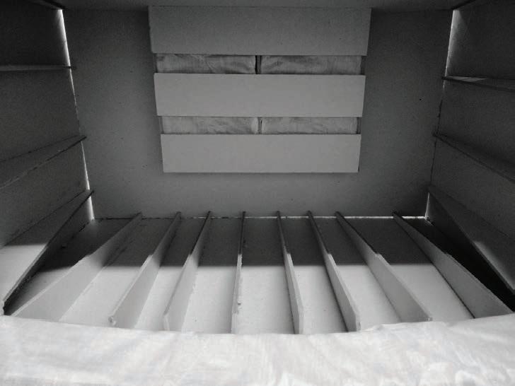 Light is often associated with heat.A chase inevitably permits light into the space, potentially impacting the performance of the space to remain cooled. In the previous models, this light was uncontrolled. In this probe, direct light incident on the structure is diffused through the cavity which is the chase.This design was retained for the final model.