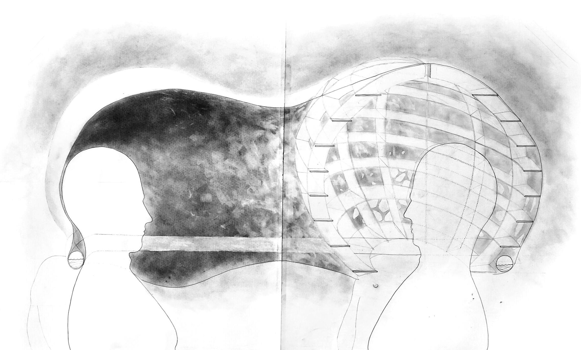 This probe saw us improving on the design langauge, performance, and anthropometric calibration of our probes.We each designed our inidividual halves, resulting in rather different structures. This is contrasted against the uniformity of the structures from outside.