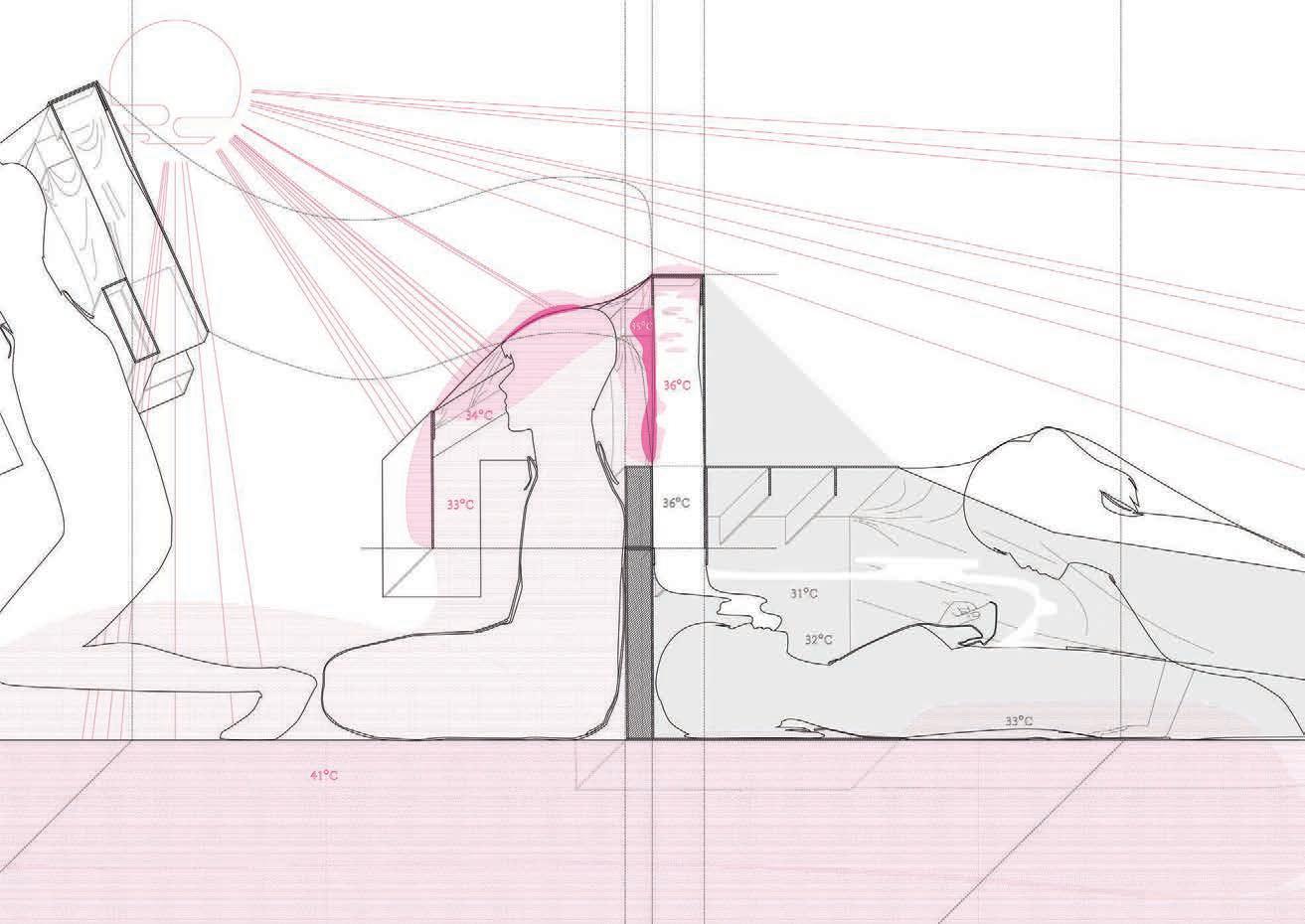 Comfort and anthropometry | Placement of structural grid and angling of greyboard on the cool side