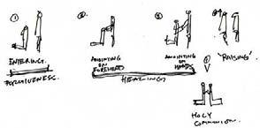 [2]The second tier (Holy Communion andAnointing of the Sick rituals) is where the Priest is able to physically reach out to the Worshipper, albeit protected from contamination by the material of white latex.