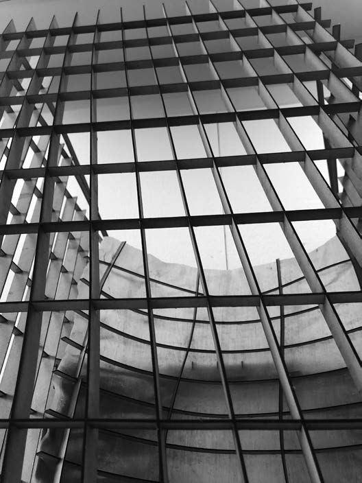 [Facing Page] The translucent multicoloured latex-lined skylights create an atmosphere akin to that in a Church, where stained glass is often found.